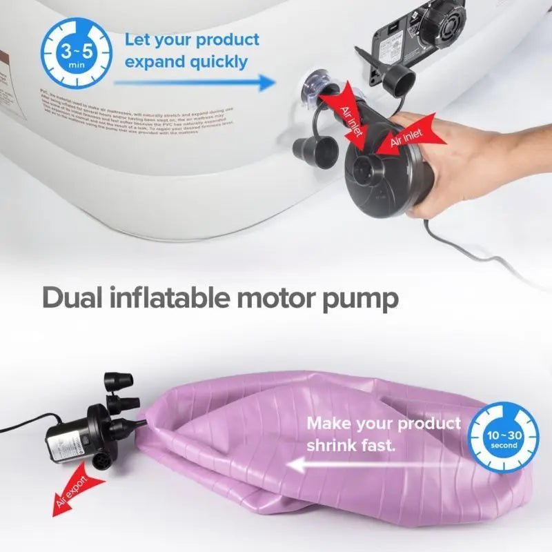 Inclus : 2 oreillers + pompe électrique + pompe manuelle